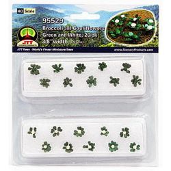 畑で露地栽培される野菜、ブロッコリーとカリフラワーを再現。外側の葉が開いて中心部に収穫間近のブロッコリー、カリフラワーができている状態を再現しています。直径は約0.95cm。グリーンの色が鮮やかな葉の中心にグリーンのブロッコリー、ホワイトのカリフラワーがそれぞれ10個づつ、計20個がセットされています。