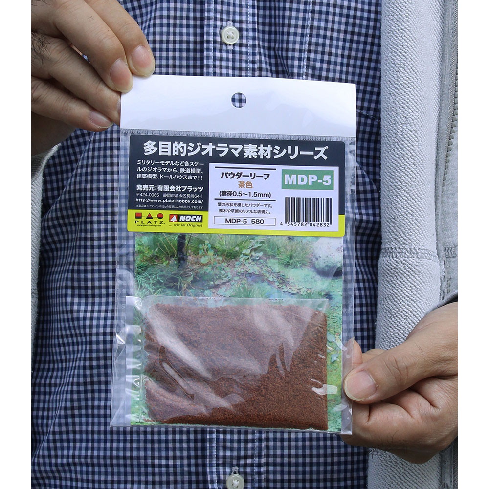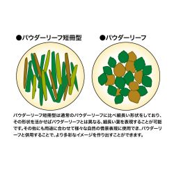 パウダーリーフは、葉の形状を模したパウダー。極小サイズながらしっかり「葉っぱ」に見えるので、樹木や草原のリアルな表現に最適です。