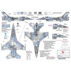 30年にわたって運用されているF-16すべてのスコードロン のテールマークを収録。ブロック30-50-52+52ADVに 加えて、シリアルナンバー1045のアメリカでシステム確認 のテスト機として使用された機体のマーキングもセット。