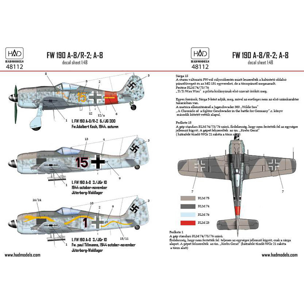 ウルフFw190A-8/R-2 A-8のマーキングを収録し