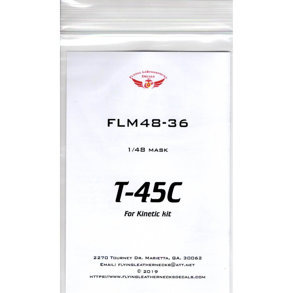 このセットではアメリカ海軍練習機、T-45Cゴス ホークの1/48スケールのキットの窓枠を塗装する ためのマスキングシールとホイールのマスキング シールを収録しています。