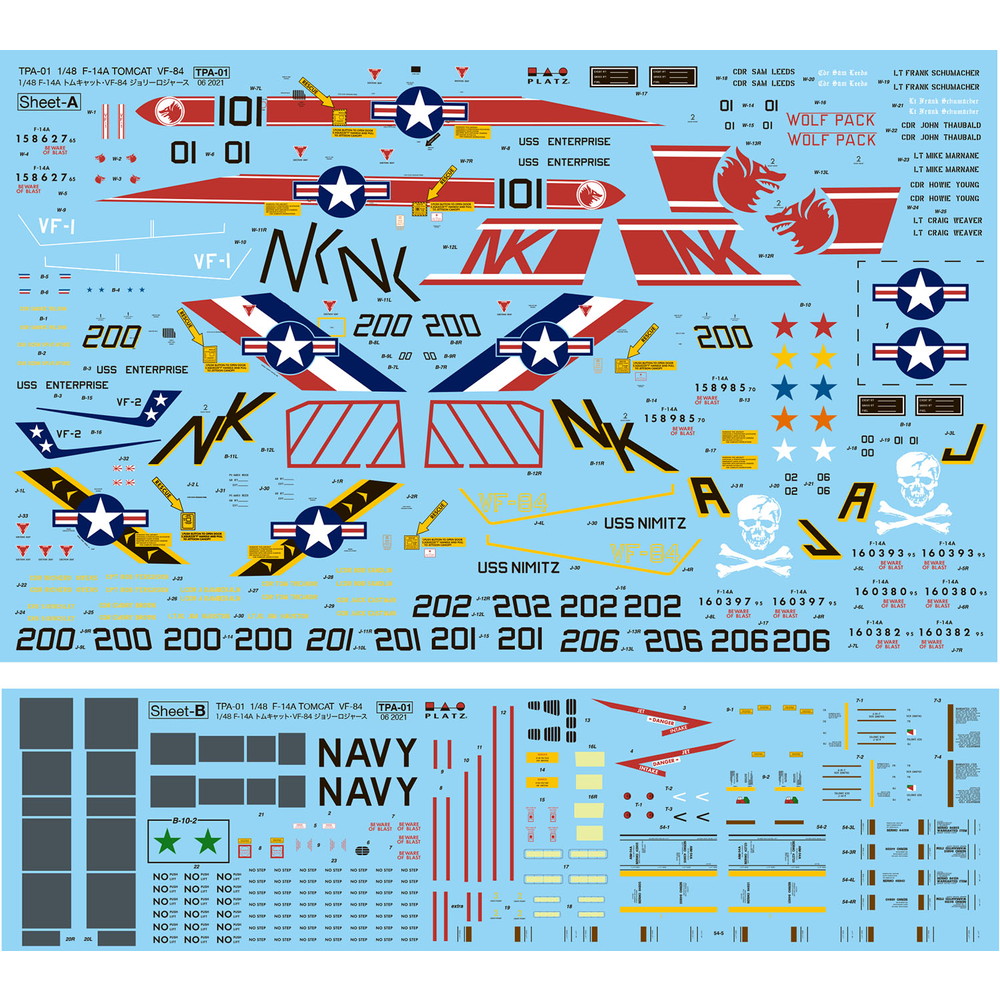 The 1st release for the New PLATZ / ITALERI Aircraft series is the U.S. NAVY F-14A TOMCAT "Jolly Rogers" with 3 marking themes, a special emblem sticker and masking sheet.