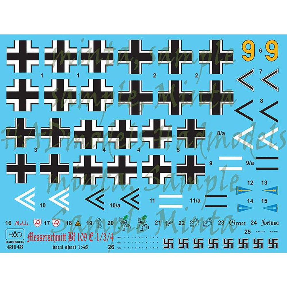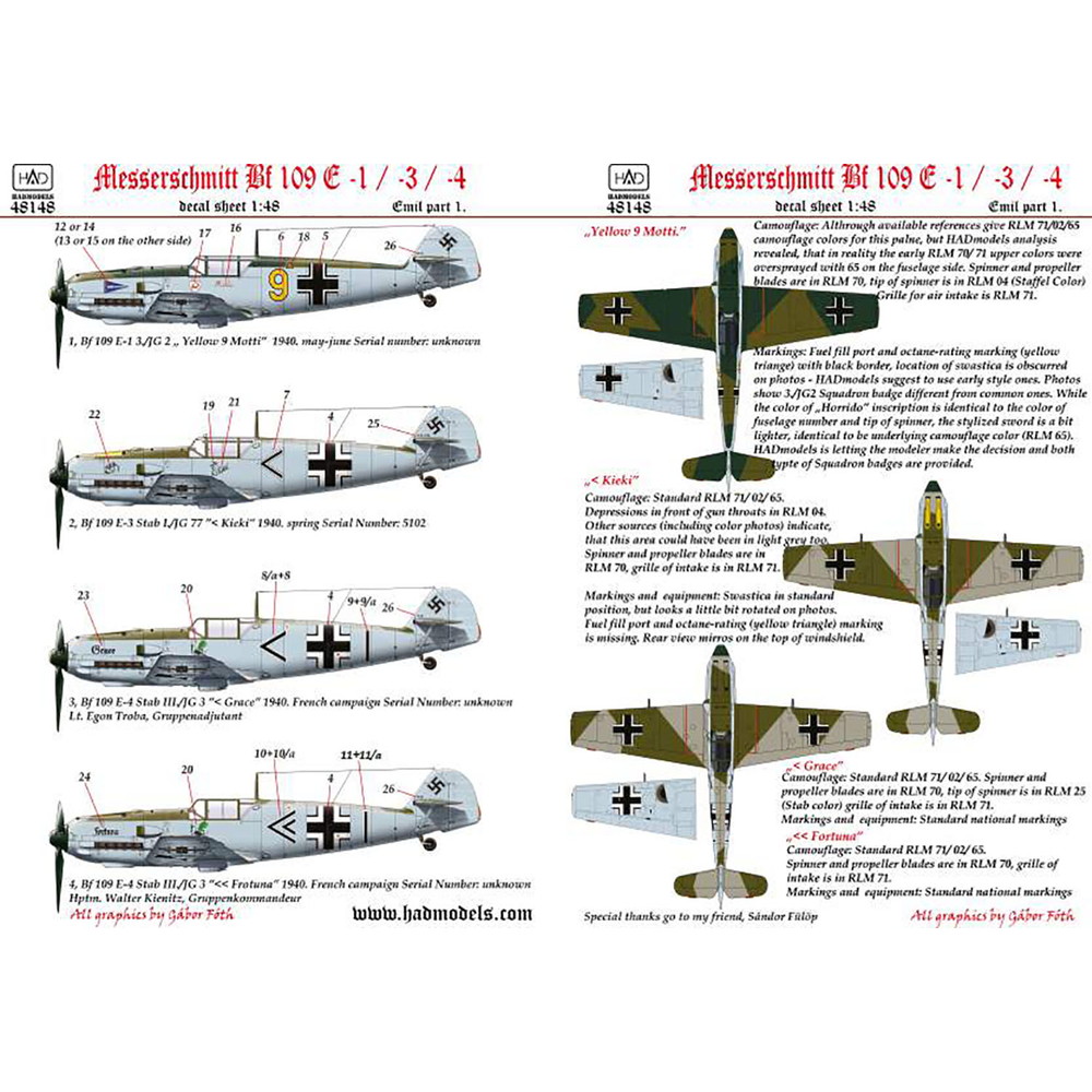 1/48スケールのメッサーシュミットF109 E-1/3/4