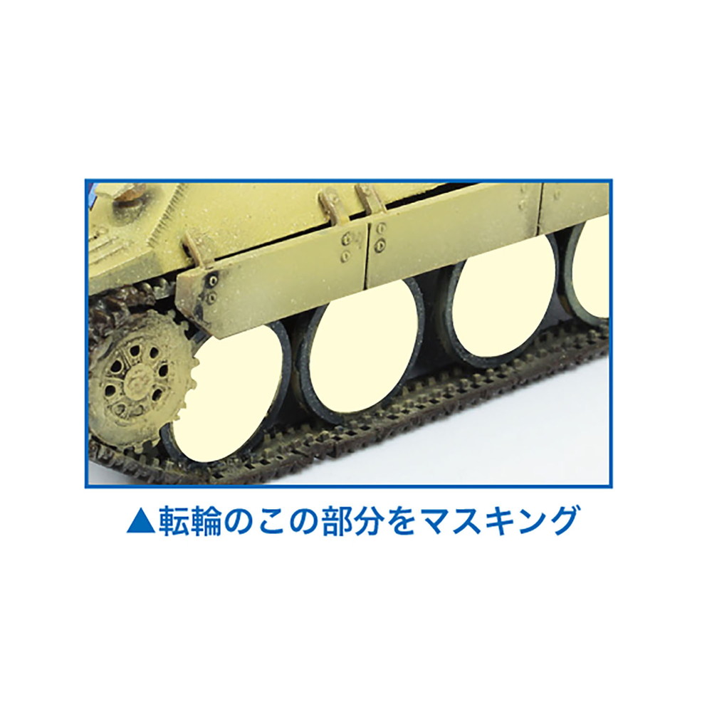 このセットではそんな転輪のホイールとゴムタイヤ部分の塗り分けに便利なマスキングシートをセットしています。
