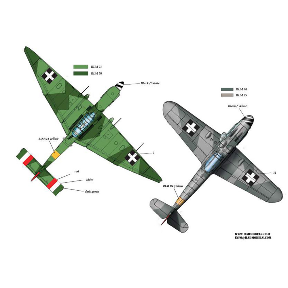 このセットは第二次大戦の戦闘機、フォッケウルフFw190F-8とメッサーシュミットBf109G-9、 ユンカースJu-87D-5のマーキングを収録しています。