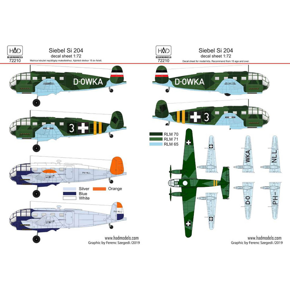 このセットは第二次大戦でドイツが開発、運用した軽輸送機、ジーベルSi204のマーキングを収録しています。