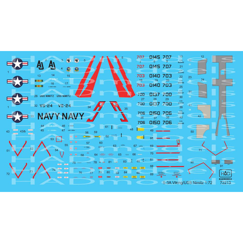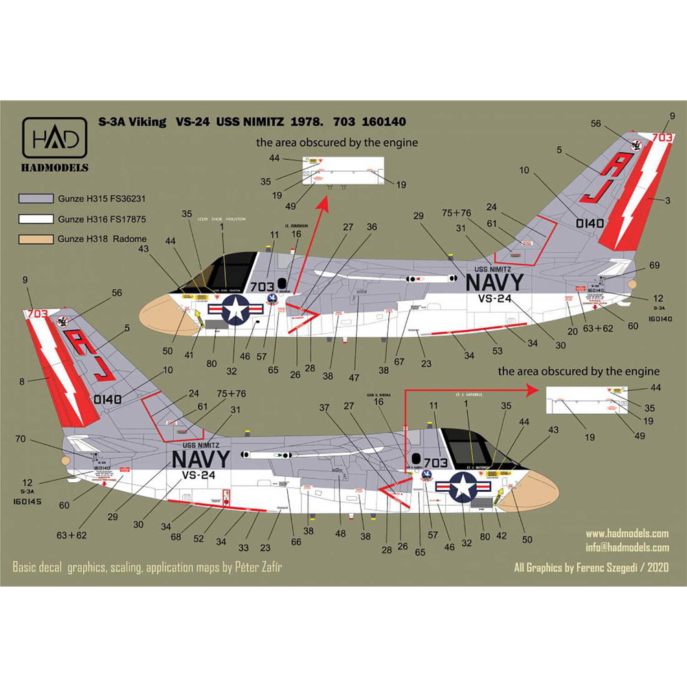 このセットは1976年、78年、80年に空母ニミッツに搭載されていたS-3Aバイキングのマーキングからセレクトして収録しています。