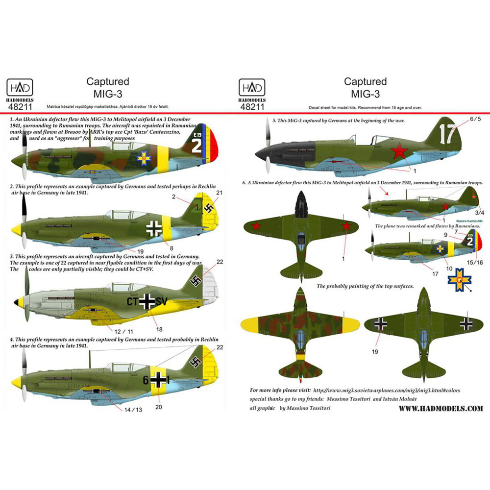 このセットは第二次大戦でソビエト軍が配備、運用した戦闘機、MiG-3のマーキングを収録しています。