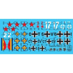 マーキングは6種類が収められています。ウクライナ空軍が1941年に配備していた機体のマーキングをはじめ、 大戦初期にドイツ軍が鹵獲してテストした機体など、ソビエト軍の機体とは一味違うマーキングが魅力です。