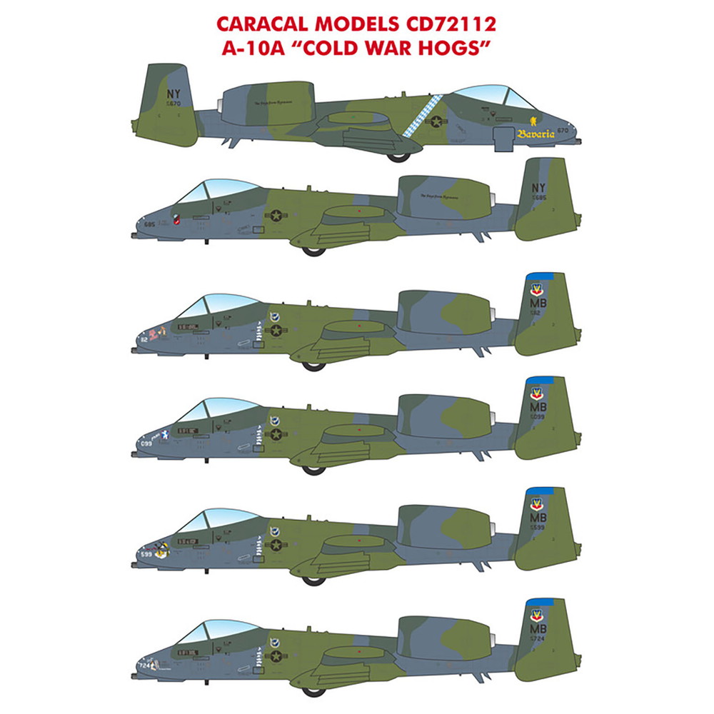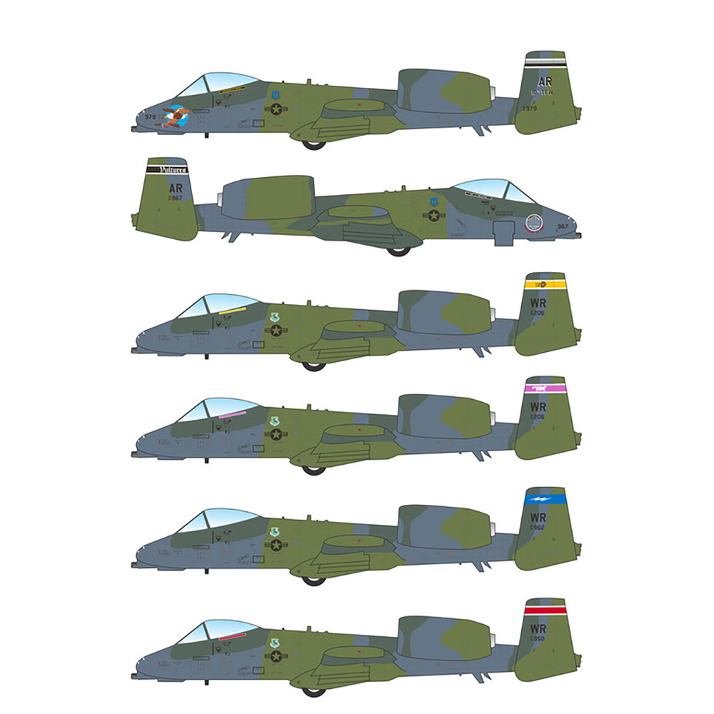 このセットはアメリカ空軍が冷戦の時代から湾岸戦争に至る時期に運用していた地上攻撃機、 A-10Aのマーキングを収録しています。その時代にA-10に施された「ユーロピアンワン」カモフラージュスキームのA-10Aのマーキングからセレクト。