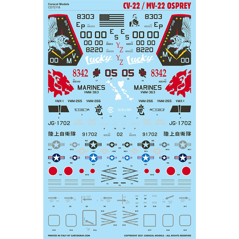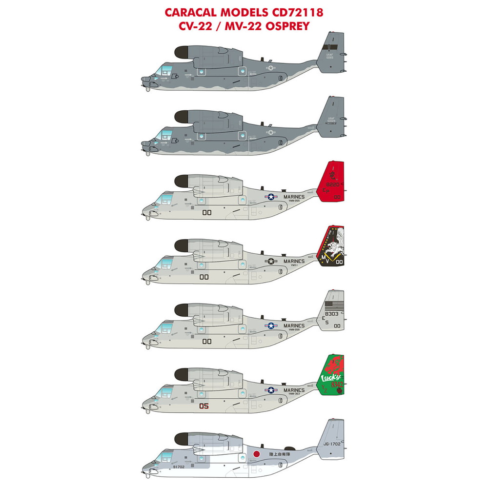 このセットはアメリカ海兵隊を中心に2005年から運用が開始されたティルトローター機、オスプレイのマーキングを収録しています。
