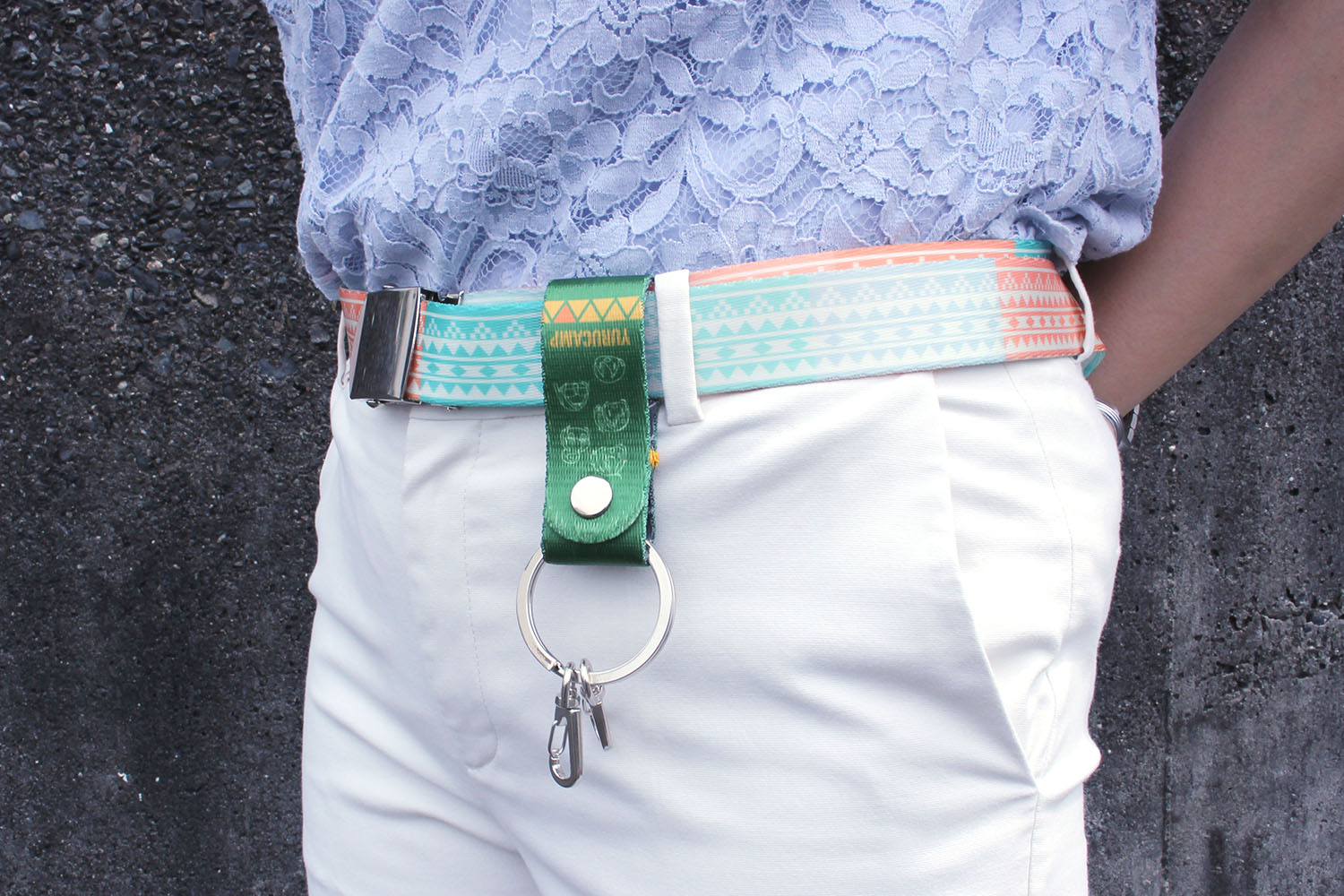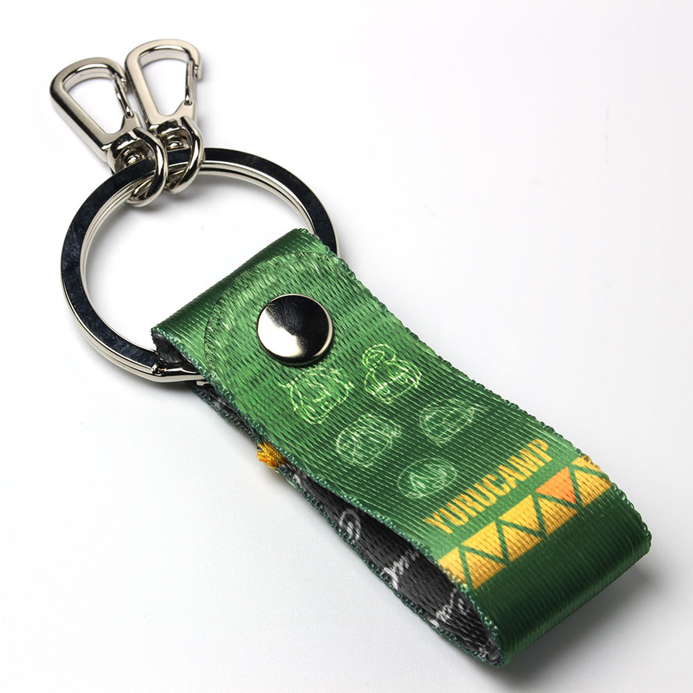 存在感のある32mm幅のベルト部には、ゆるキャン△をイメージしたデザインをあしらっており、腰につけてさりげなくゆるキャン△アピール!! フック、リング部に鍵やアウトド アギアを付けることで、キーホルダー、アウトドアツールホルダーとしても使用可能!!ゆるキャン△ファ ンなら絶対欲しいアイテムです!