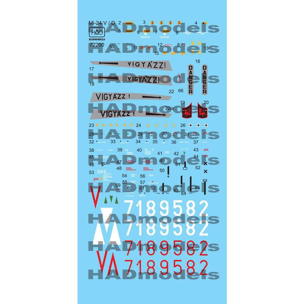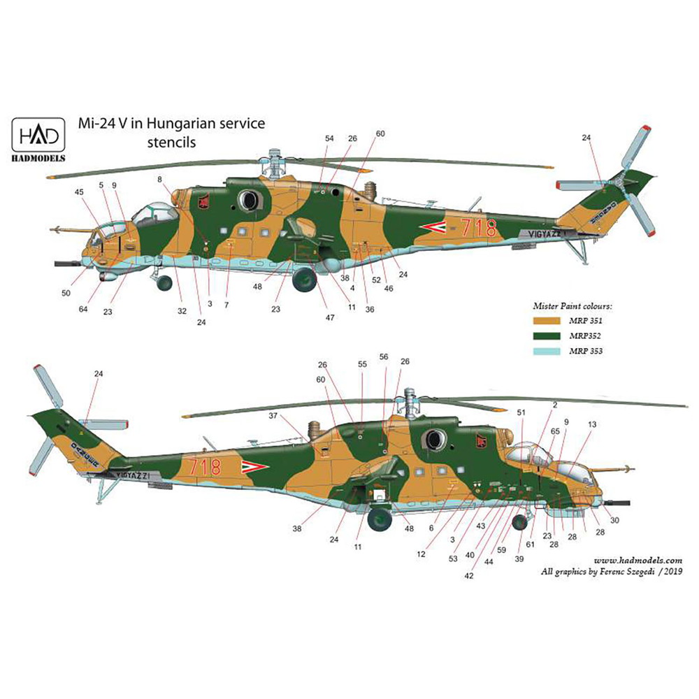 このセットはHADモデルが地元、ハンガリー空軍が50機近くを運用するヘリコプター、 Mi-24ハインドのマーキングを収録したデカールセットです。