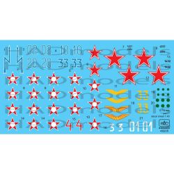 6機のマーキングが収録されています。第二次大戦中にソビエトが運用した迷彩カラーの機体のマーキングもセットされています。
