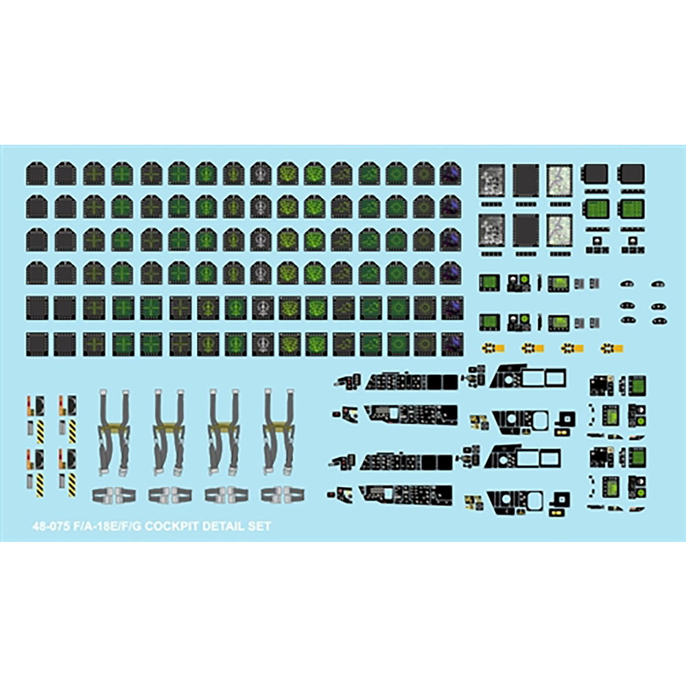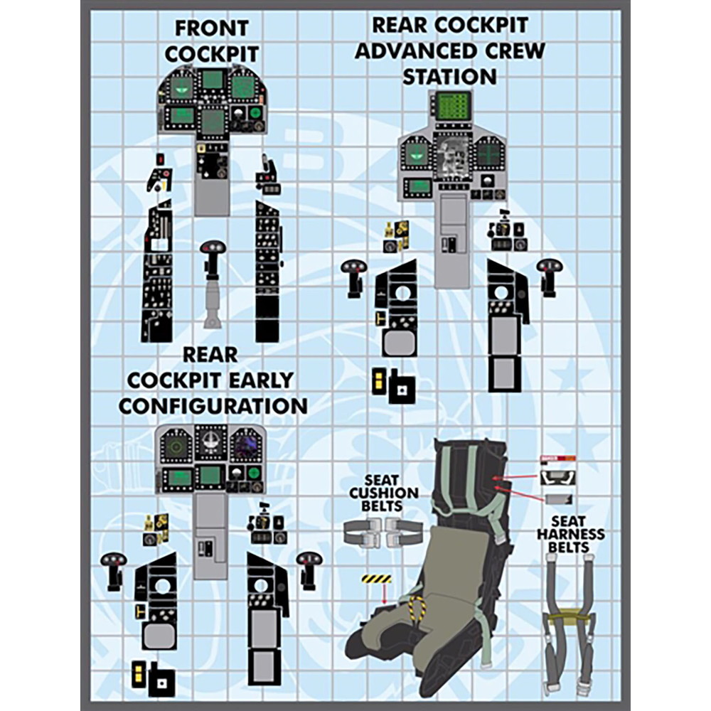 このセットではアメリカ海軍の艦上戦闘機、F-18E、F、Gの各機体のコクピットのディテールを