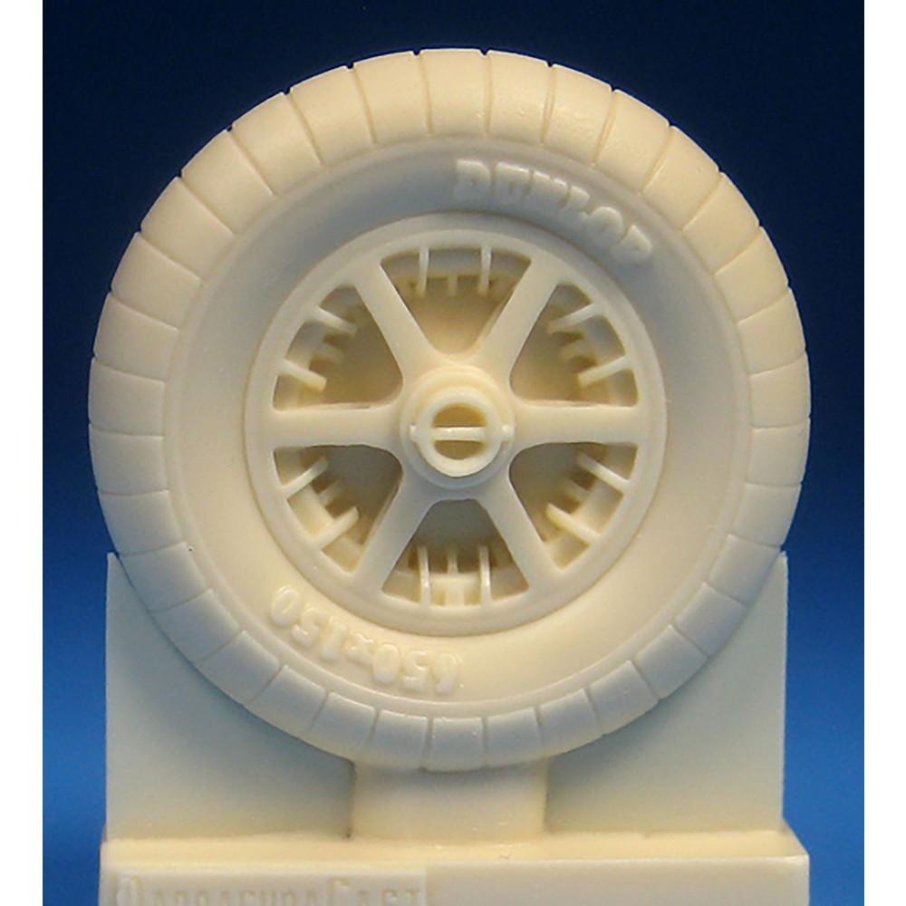 このセットではスポークハブタイプをレジンならではの繊細なディテールで再現。タイヤはトレッド面に 横溝のトレッドパターンが刻まれたリブタイプのタイヤをトレッドパターンや形状、サイズもリアルにモデル化。