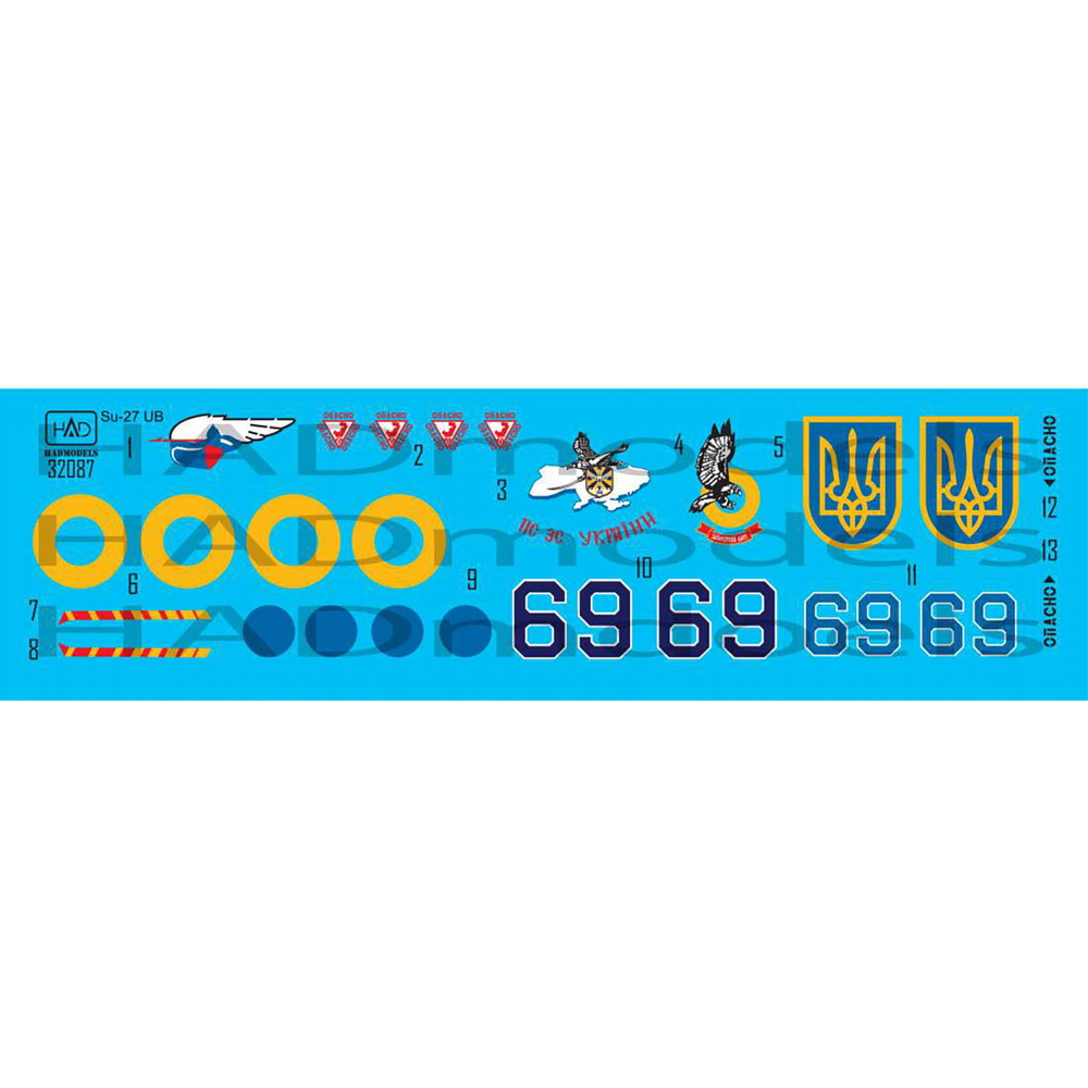 このセットはソビエトの戦闘機、スホーイSu-27フランカーUBの機体からセレクトしたウクライナ空軍機の 機体番号69号機のマーキングを収録しています。