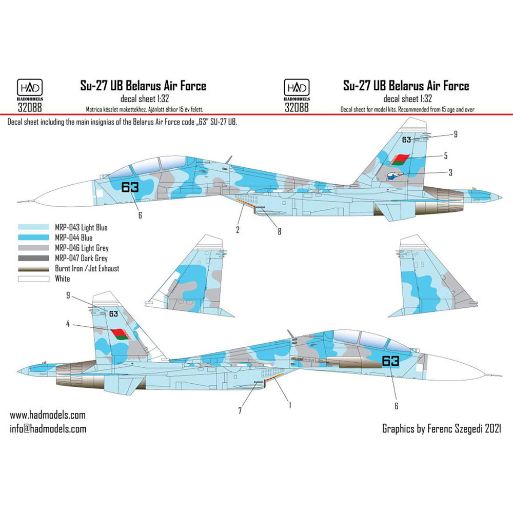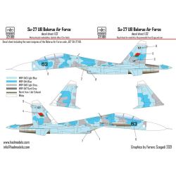 このセットはソビエトの戦闘機、スホーイSu-27フランカーUBの機体からセレクトしたベラルーシ空軍機の機体番号63号機のマーキングを収録しています。