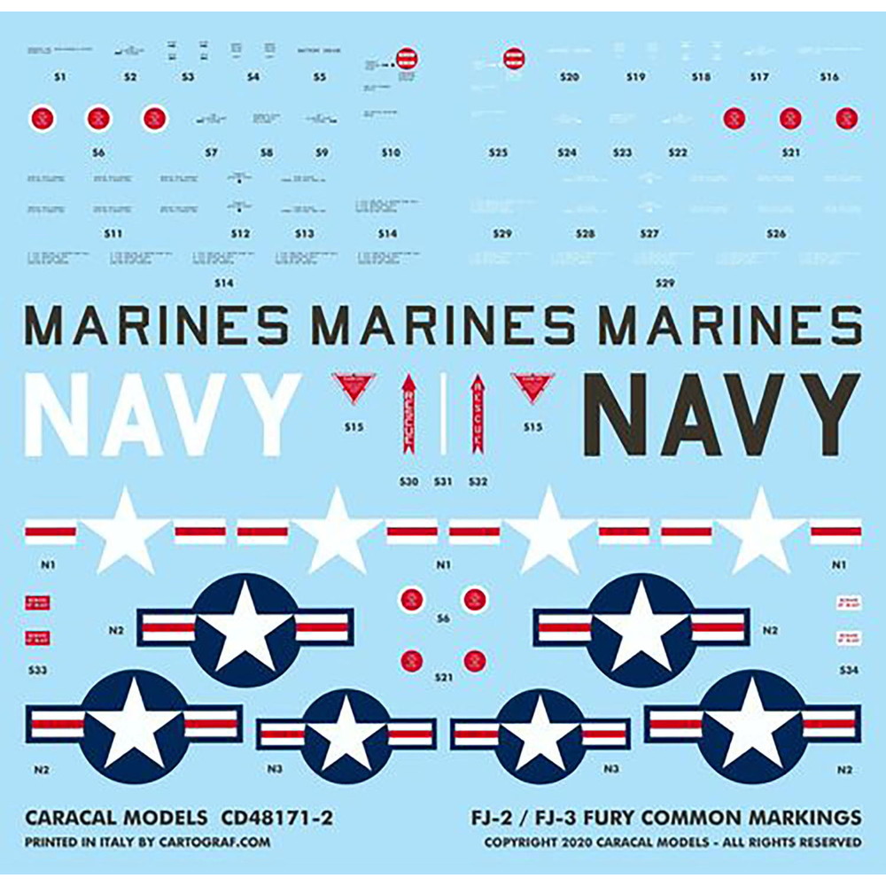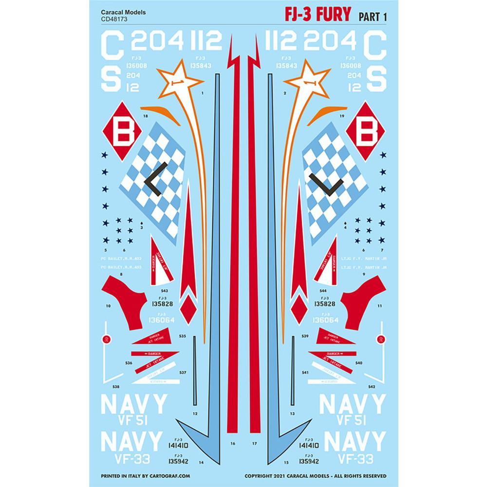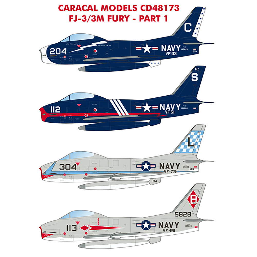 1/48スケールのFJ-3/FJ-3Mフューリーのモデルに対応したデカールのセットです。