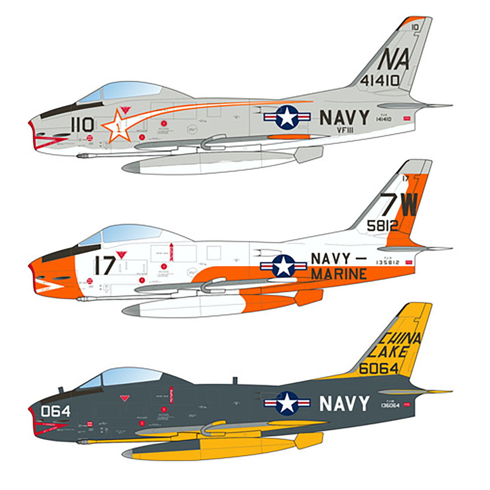 このセットはアメリカの戦後の傑作ジェット戦闘機、F-86セイバーの海軍機バージョン、FJ-3フューリーのマーキングからセレクト。