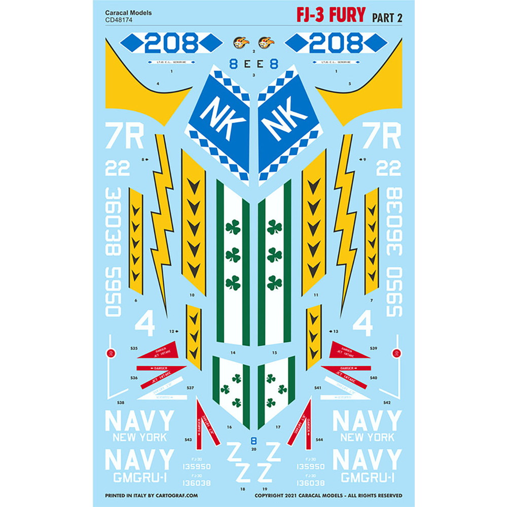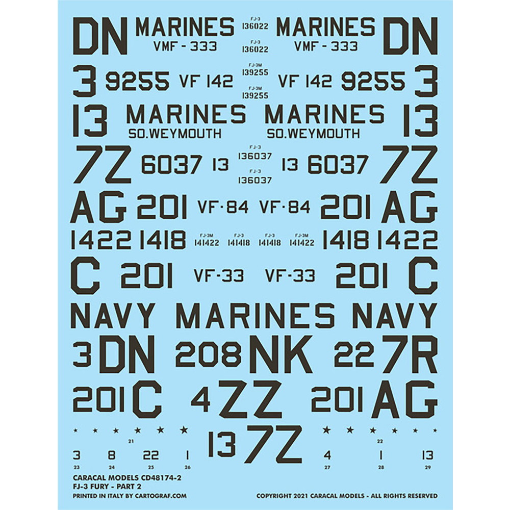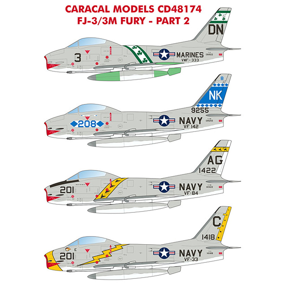 1/48スケールのFJ-3/FJ-3Mフューリーのモデルに対応したデカールのセットです。