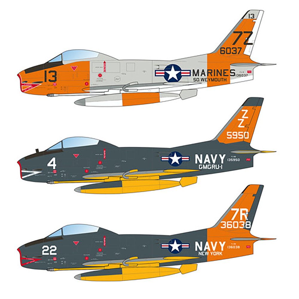 このセットはアメリカの戦後の傑作ジェット戦闘機、F-86セイバーの海軍機バージョン、FJ-3フューリーのマーキングからセレクト。