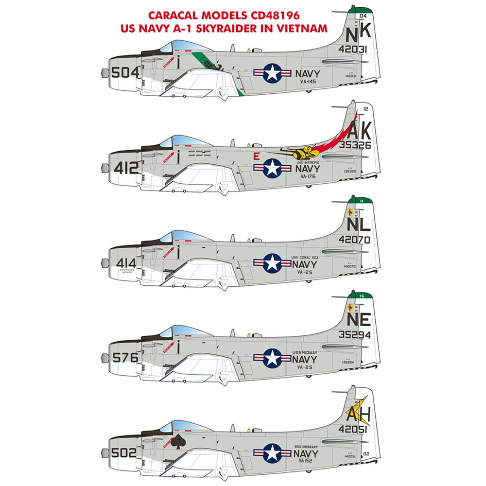 このセットはベトナム戦争で活躍したアメリカ海軍のA-1スカイレイダーのマーキングを収録しています。