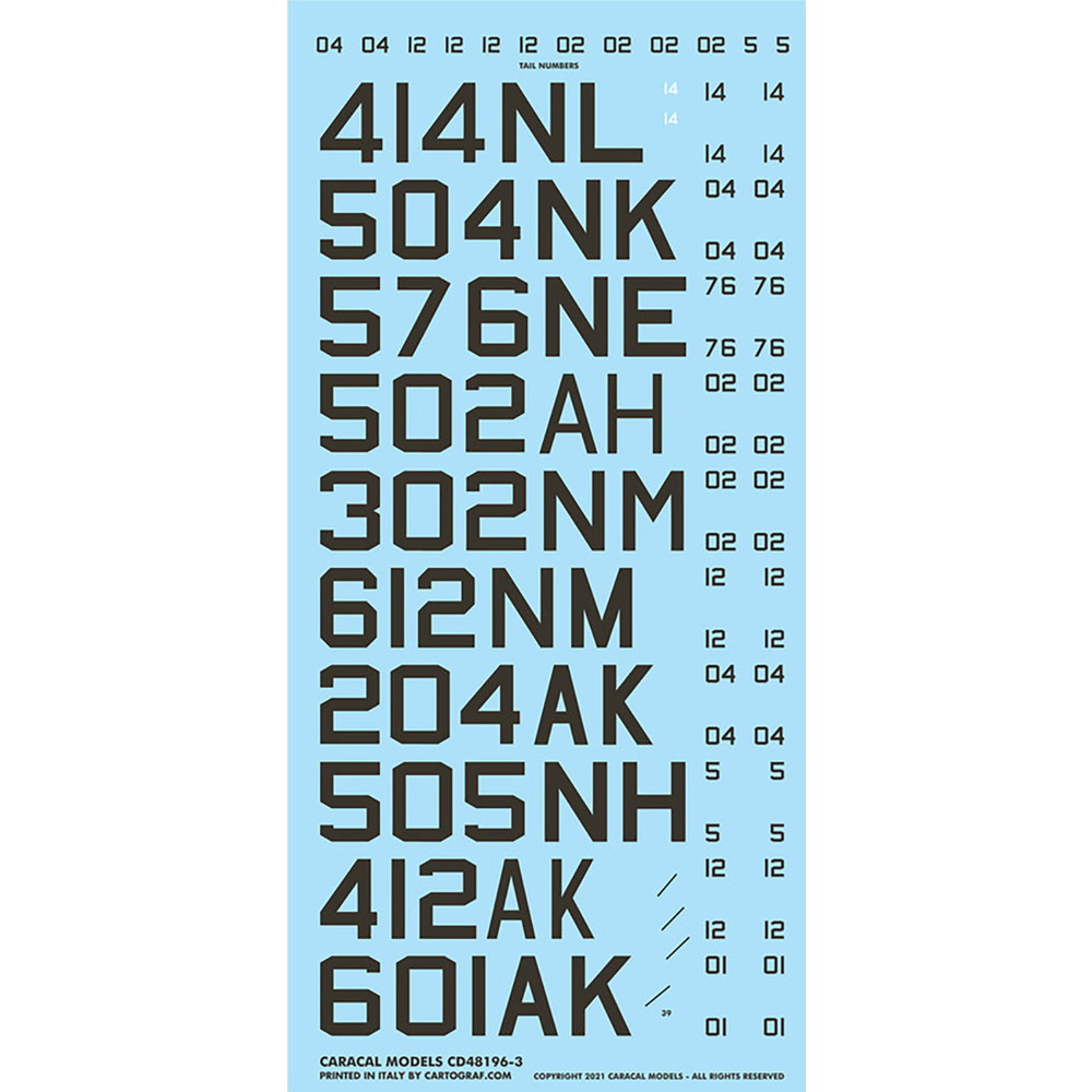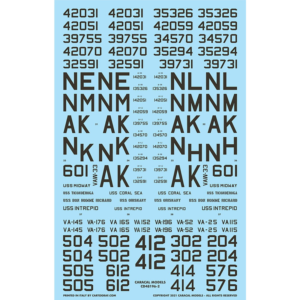 単座型のA-1の機体からマーキングをセレクト。 複数の艦船で運用されたさまざまなユニットの中から10機のマーキングをセレクト。いずれか1機分を製作できるステンシルも入っています。