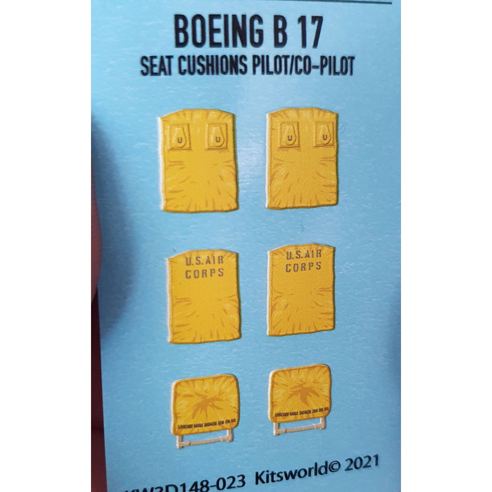 1/48スケールのキットに使用可能です。貼り付けるだけで厚みを持った立体感ある仕上がりが楽しめます。フルカラーですから塗装の必要もありません。 セットされているのはB-17のパイロットと副操縦士が座るシートの座面と背面のクッションを再現。