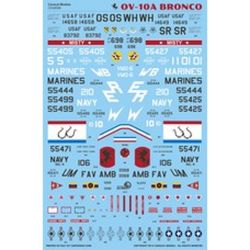 このセットはベトナム戦争から湾岸戦争に至るまで活躍したアメリカの軽攻撃機、OV-10Aブロンコのマーキングを収録しています。