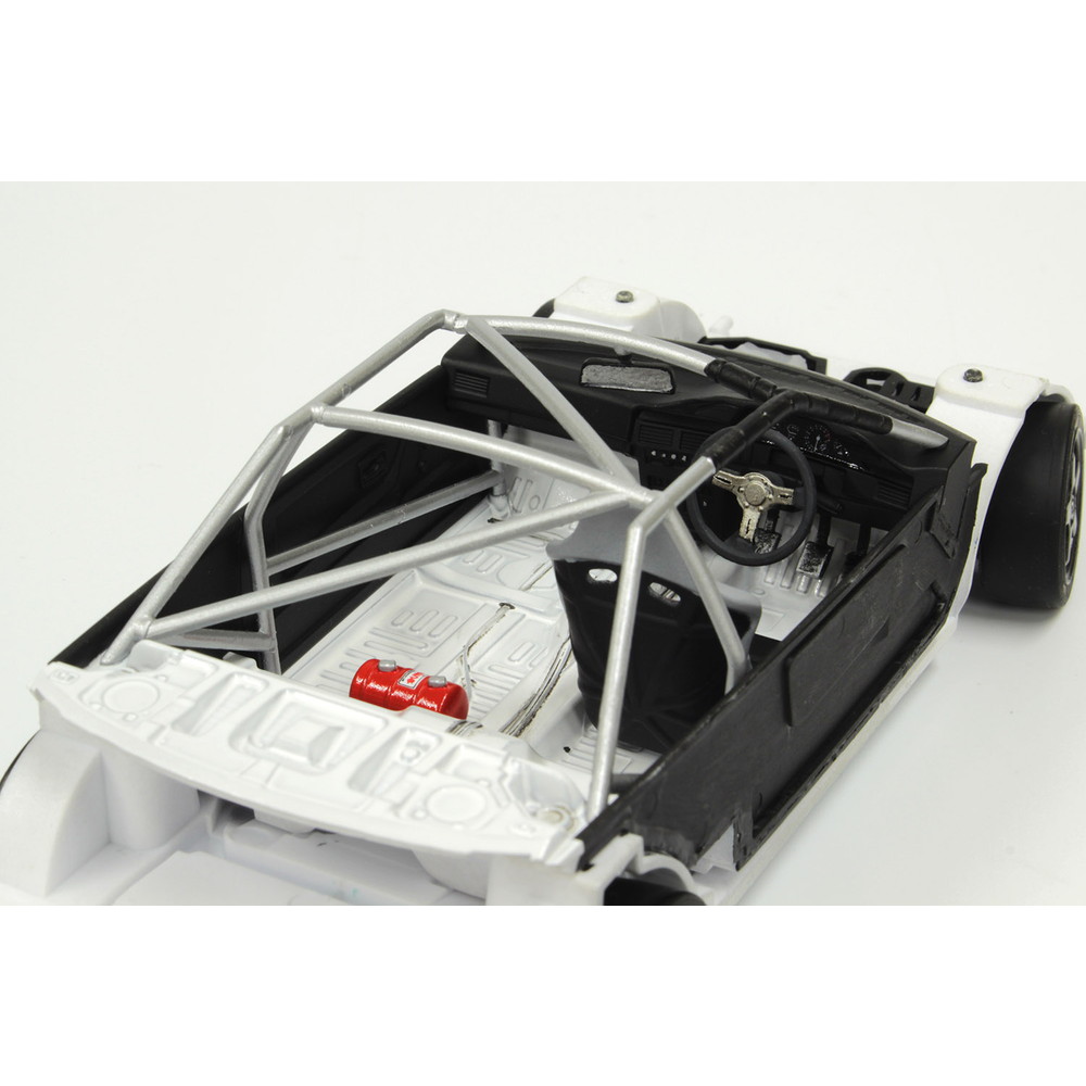 タフなレースの雰囲気も伝わってきます。外観のみならず、ロールバーをはじめとする室内の装備も詳細に再現。