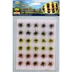 葉っぱと花をつけた茎が束になって生えている花の茂み、株を再現した完成モデルです。HOスケールで高さは0.95cm。