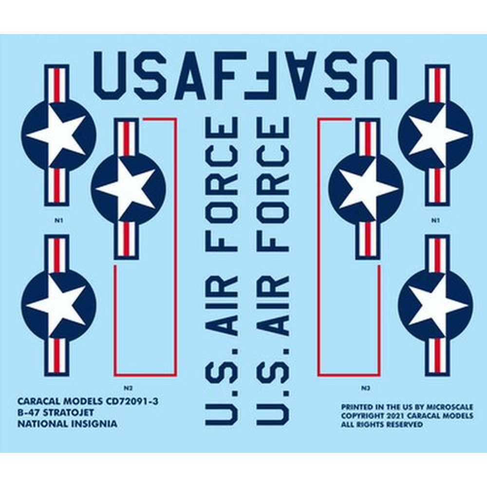 1/72スケールのB-47ストラトジェットのモデルに対応したデカールのセットです。