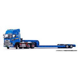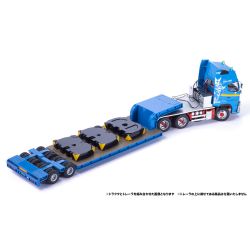 1961年に設立され、都市建設などの作業に最新の機材と技術で取り組み続ける株式会社大矢運送の コーポレートカラーで塗装されています。もちろん、重量物運搬用に開発されたトレーラならでは の荷台部分を低く下げた特徴あるデザインやトラクターとの連結部分のグースネック形状などもリアルに再現。