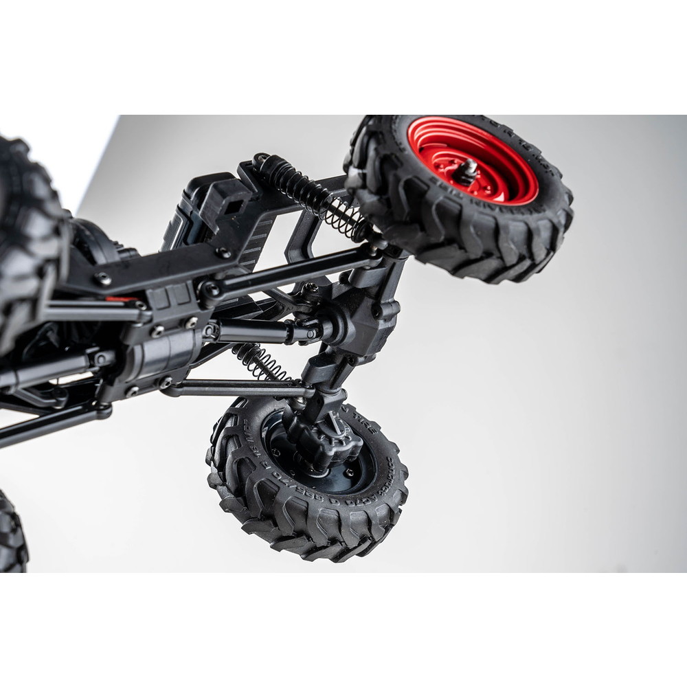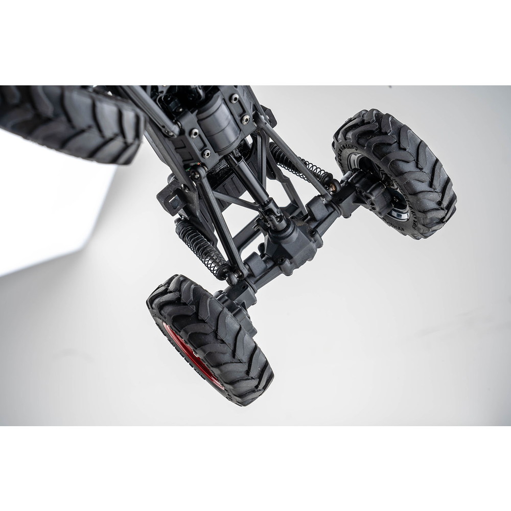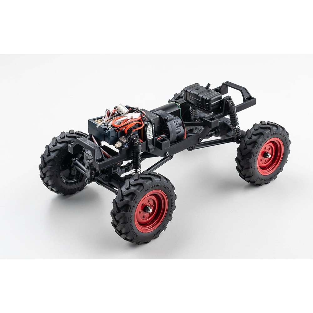 マシンはシャフトドライブの四輪駆動メカニズムから前後のサスペンションに至るまで車体は組み立て完成済み。RCメカニズムも組み込み済みでもちろん送信機も用意されています。電波は2.4GHz。
