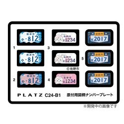 ナンバープレートは独特な形状をしたものやカラフルなイラストが描かれて地元で人気の図柄ナンバープレートを再現しています。
