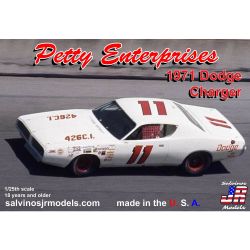 NASCARの人気ドライバー、リチャード・ペティのチームで活躍したバディ・ベイカーが1971年シーズンにドライブしたダッジチャージャーを1/25スケールで再現したプラスチックモデル組み立てキットです。