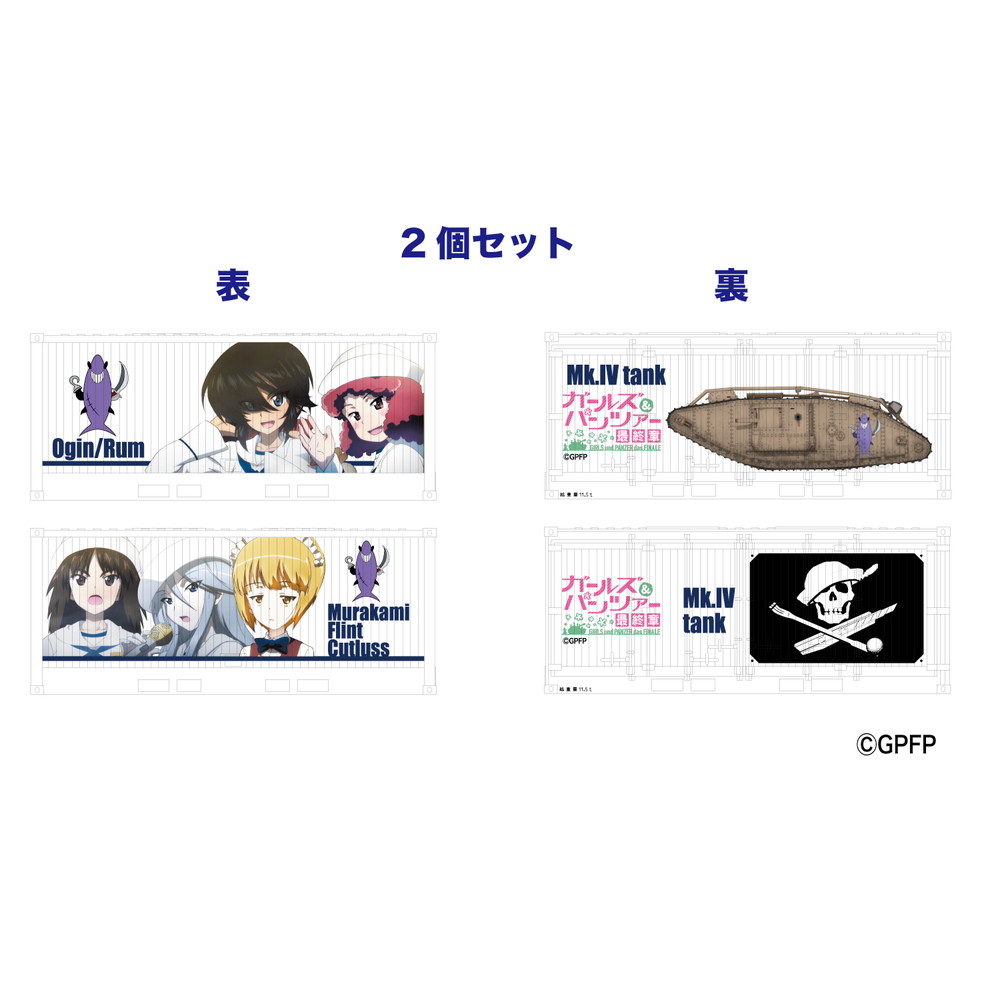 このセットではサメさんチームのメンバーを描きます。コンテナの片方の面にはメンバーのイラスト、そしてもう一方の面には彼女たちが搭乗する車輌やフラッグが描かれます。これまでの12ftタイプよりも大型のコンテナは側面いっぱいに描かれた彼女たちの笑顔が見逃せません。