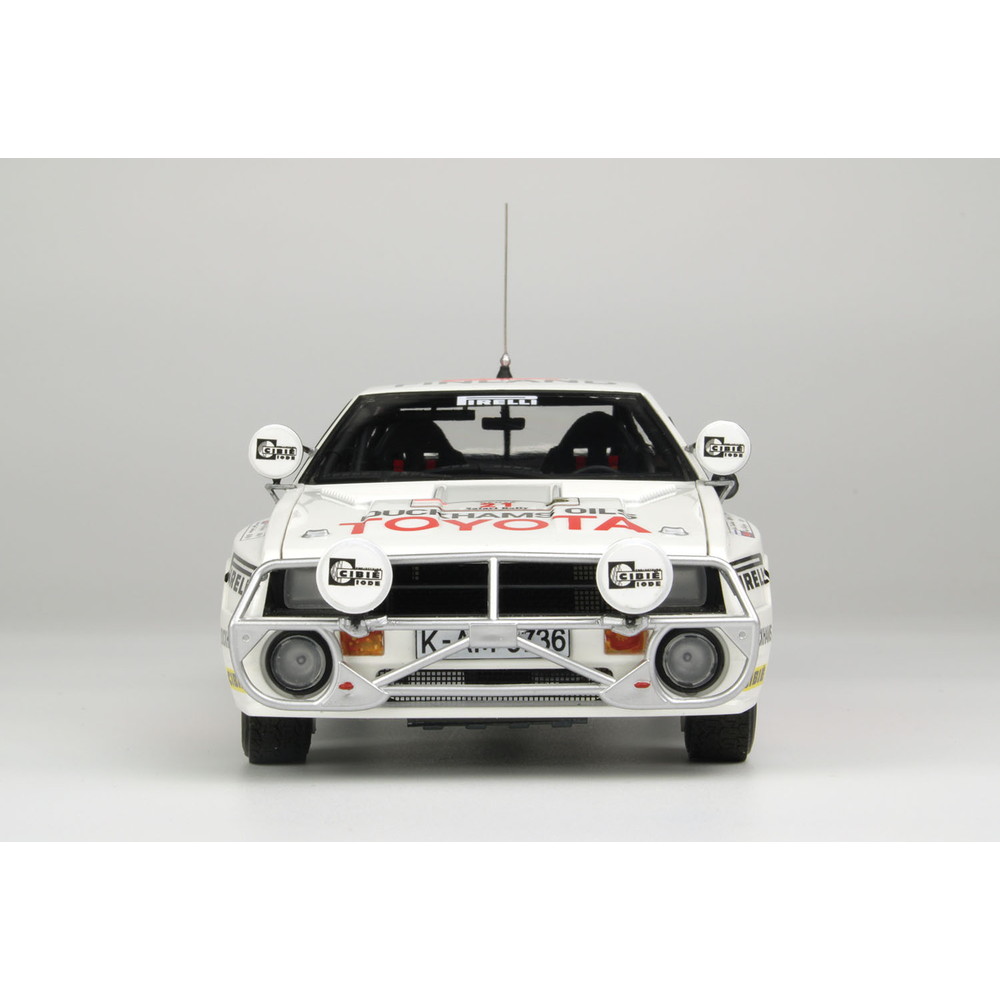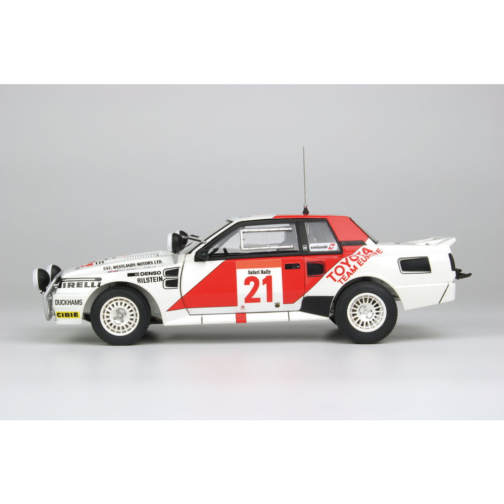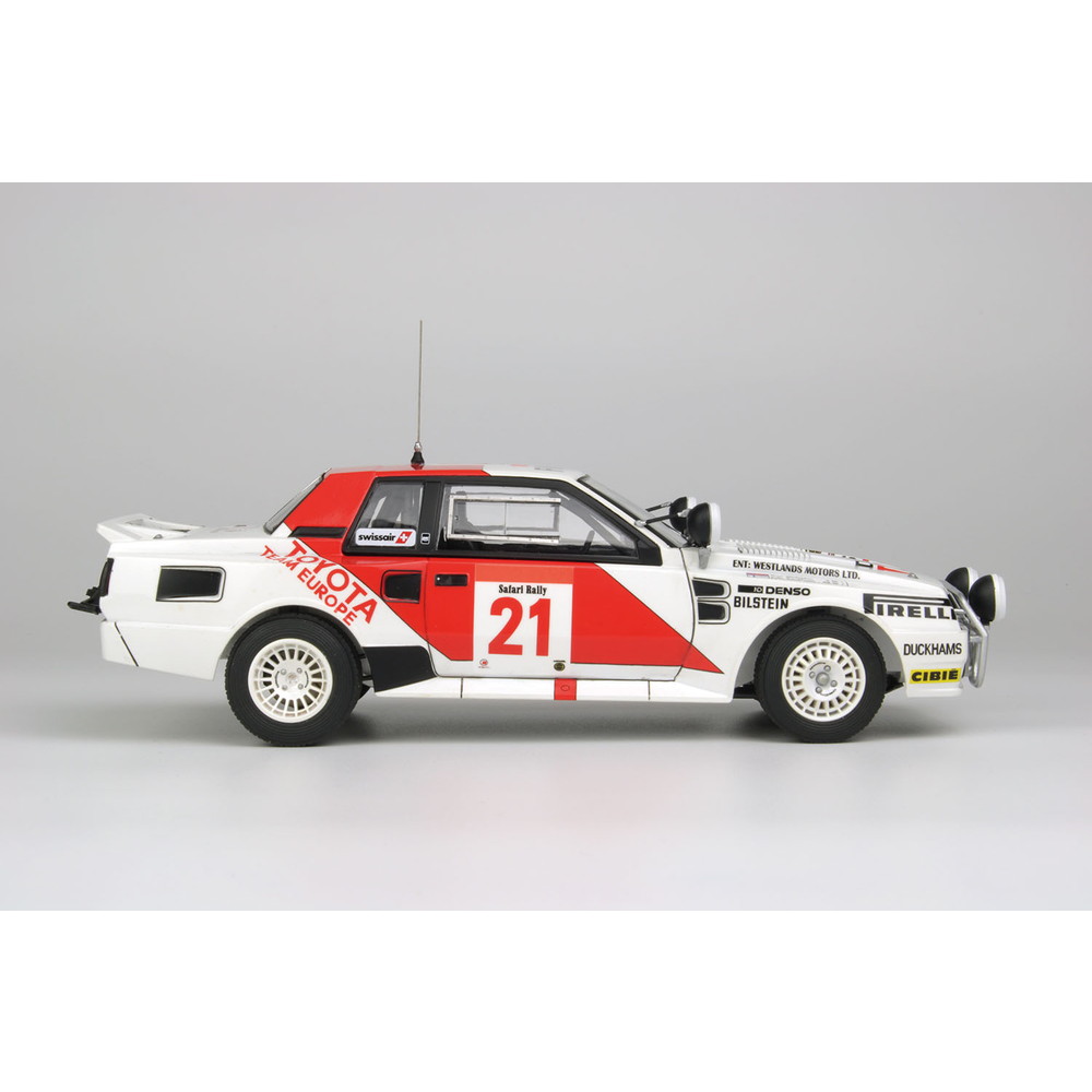1985年の世界ラリー選手権の1戦、サファリラリーでユハ・カンクネンがドライブして優勝したトヨタ セリカ TA64ツインカムターボを再現したプラスチックモデル組み立てキットです。
