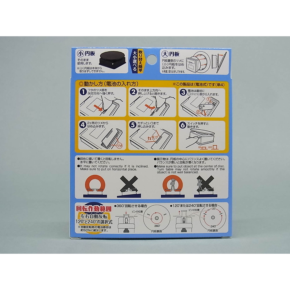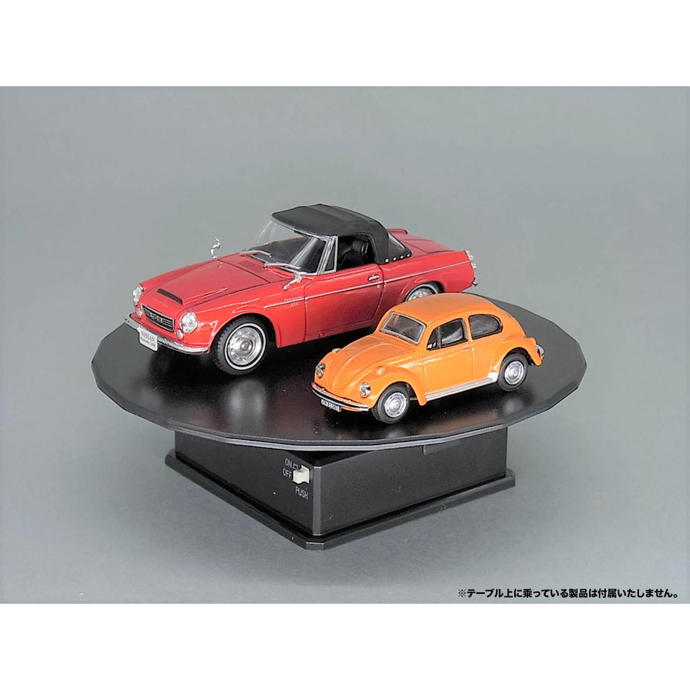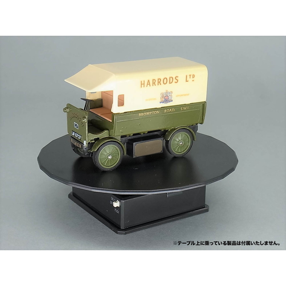 完成品のディスプレイに、展示会などで活躍するディスプレイターンテーブル。このセットは単4アルカリ乾電1本で作動するバッテリータイプです。