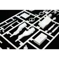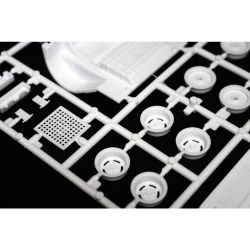 キットはエンジンからシャシーまで、室内まで精密に再現されたフルディテールキット。フロントのボンネット下にはV型8気筒エンジンを補機類まで詳細に再現。ディテールアップに腕をふるってみるのも楽しみです。