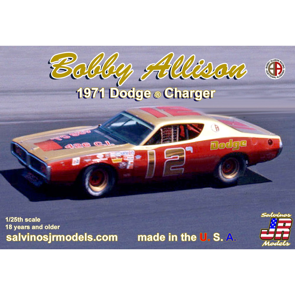 殿堂入りを果たしたNASCARの人気ドライバー、ボビー・アリソンが1971年シーズンにドライブしたダッジチャージャーを1/25スケールで再現したプラスチックモデル組み立てキットです。