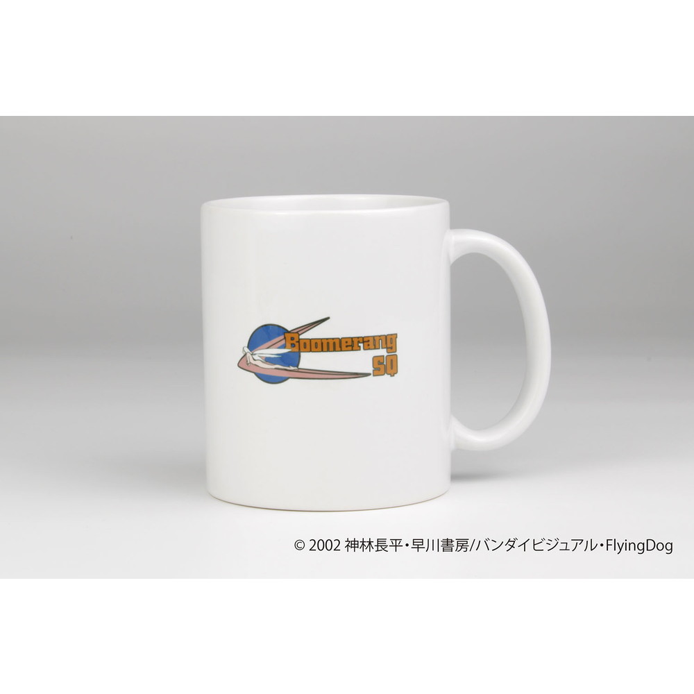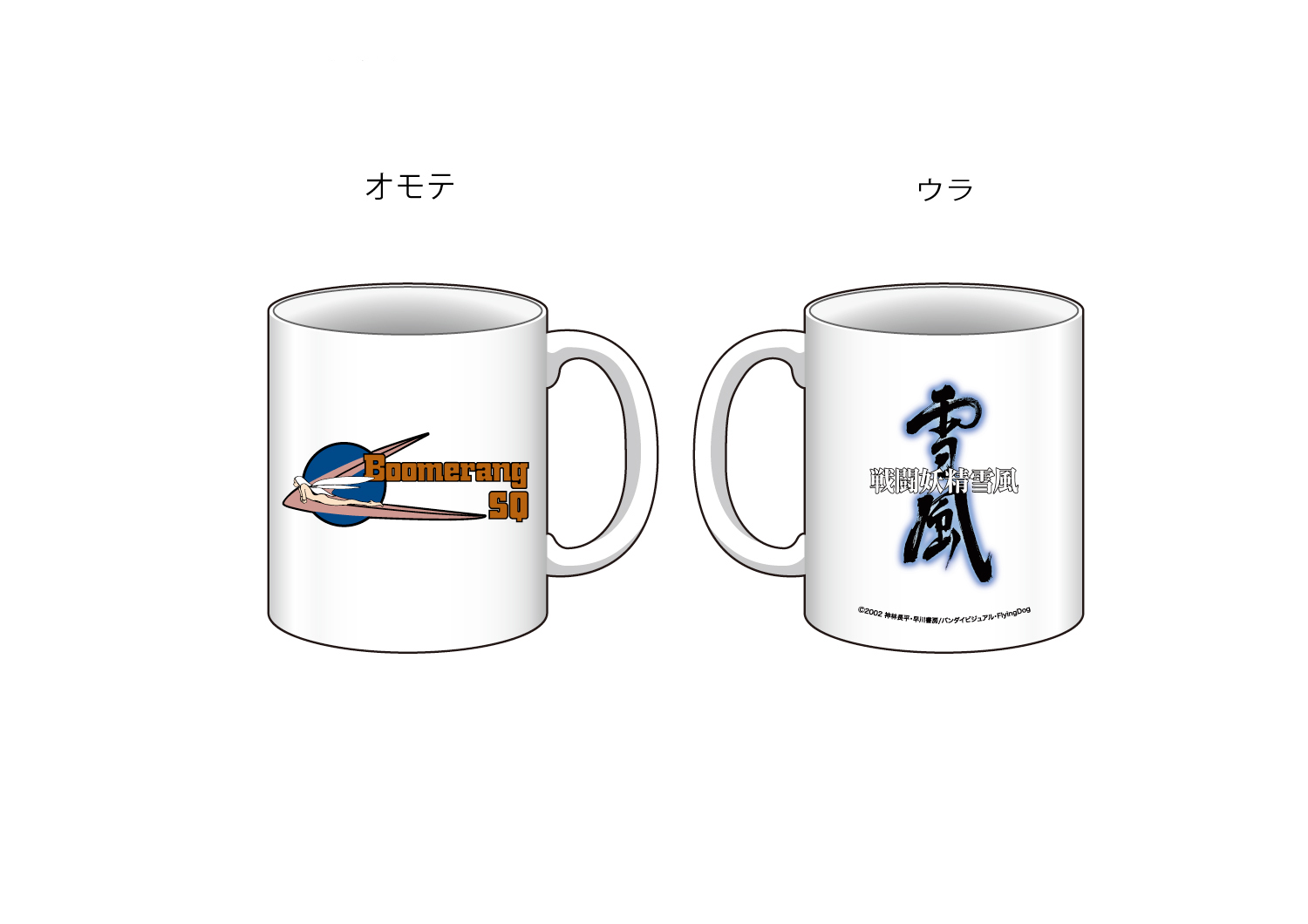 このマグカップは片側に戦闘妖精雪風のロゴ、反対側にはブーメランSQのエンブレムをプリント。どちらで飲んでも雪風を近くに感じていただけるデザインです。本体のベースカラーはホワイト。つかみやすい大型の取手がついたシンプルな円筒形の本体は手に馴染みやすく、使いやすいデザイン。
