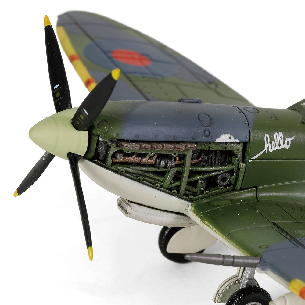 マーリンシリーズのエンジンを 搭載したMK.IXをモデル化しています。スピットファイアならではの 機体形状は正確にモデル化。エンジンカバーは取り外し可能で内部にはリアルに 塗装されたエンジンを再現します。