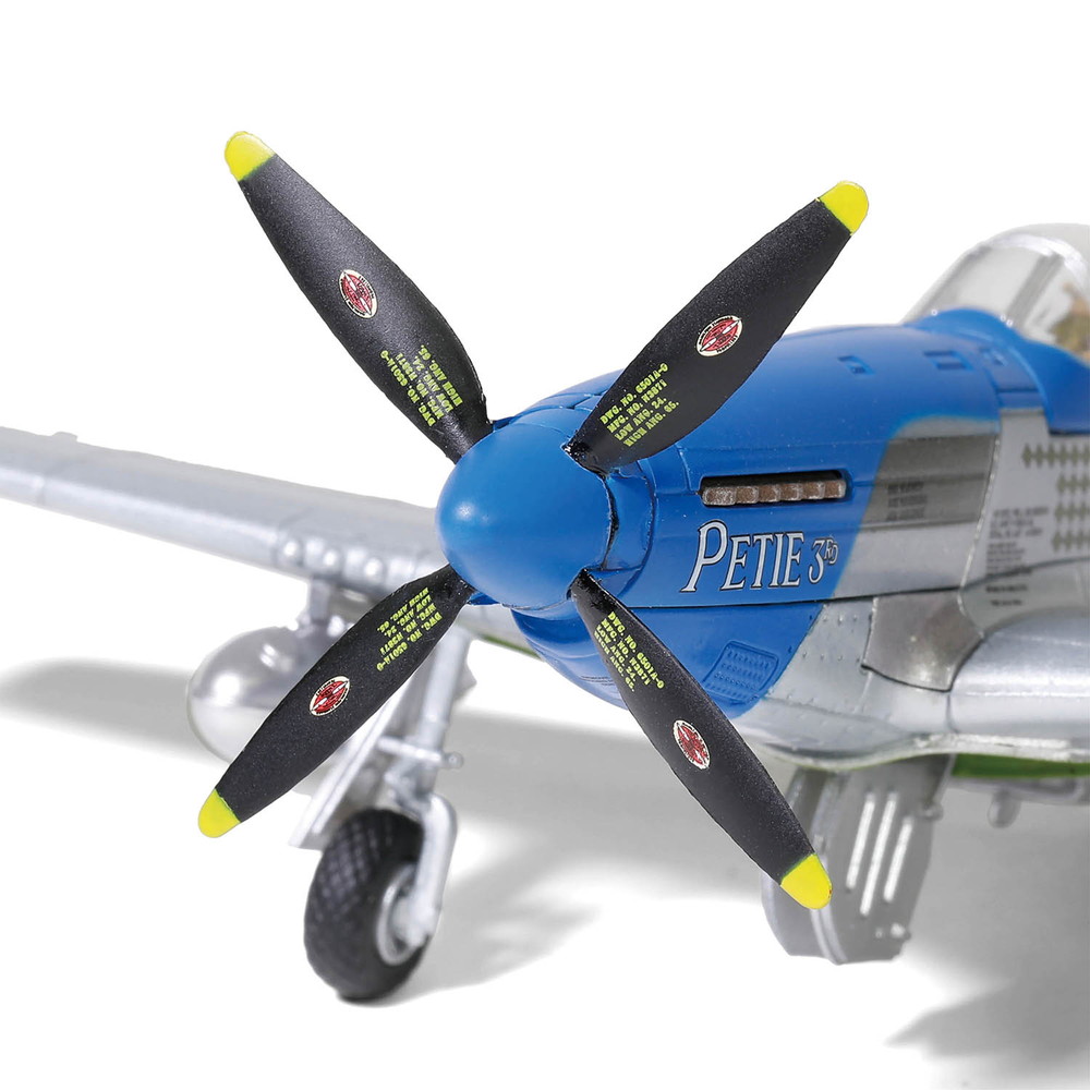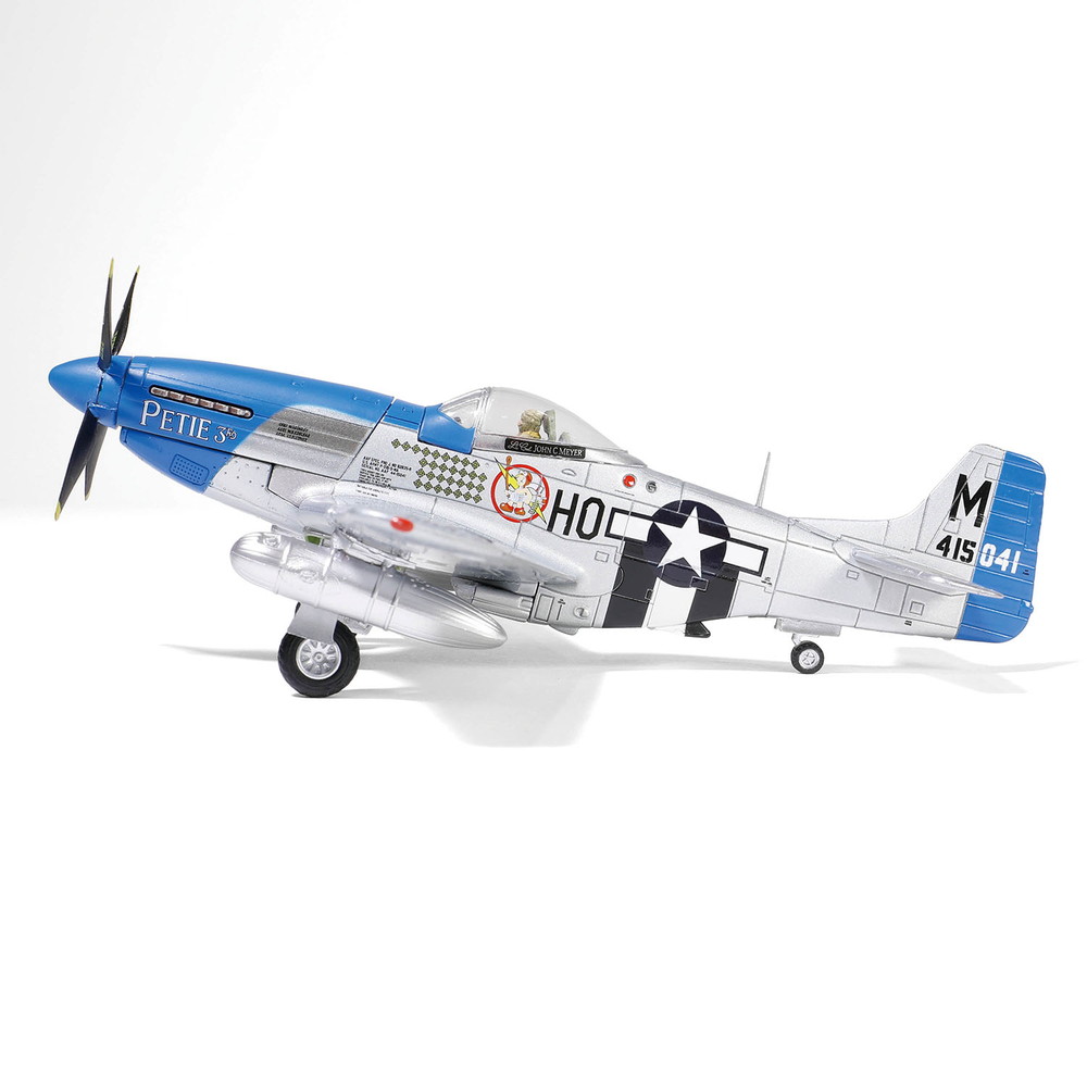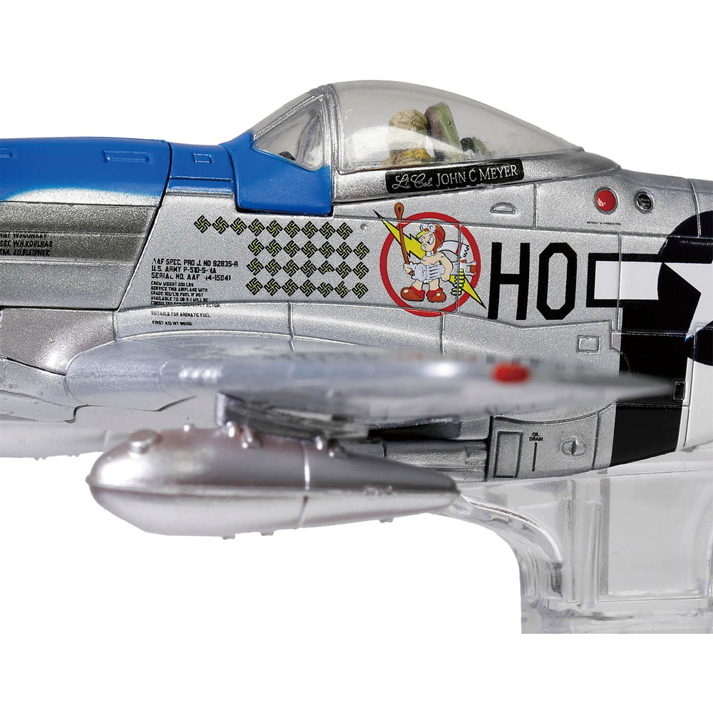 マーキングは1944年にヨーロッパ戦線で活躍した487戦闘機中隊のジョン・C・メイヤー搭乗機を再現。機首のペティサードの文字やコクピットサイドの撃墜マークなどを超精密タンポ印刷によるマーキングなど、ミリ単位までこだわった塗装仕上げも見逃せません。
