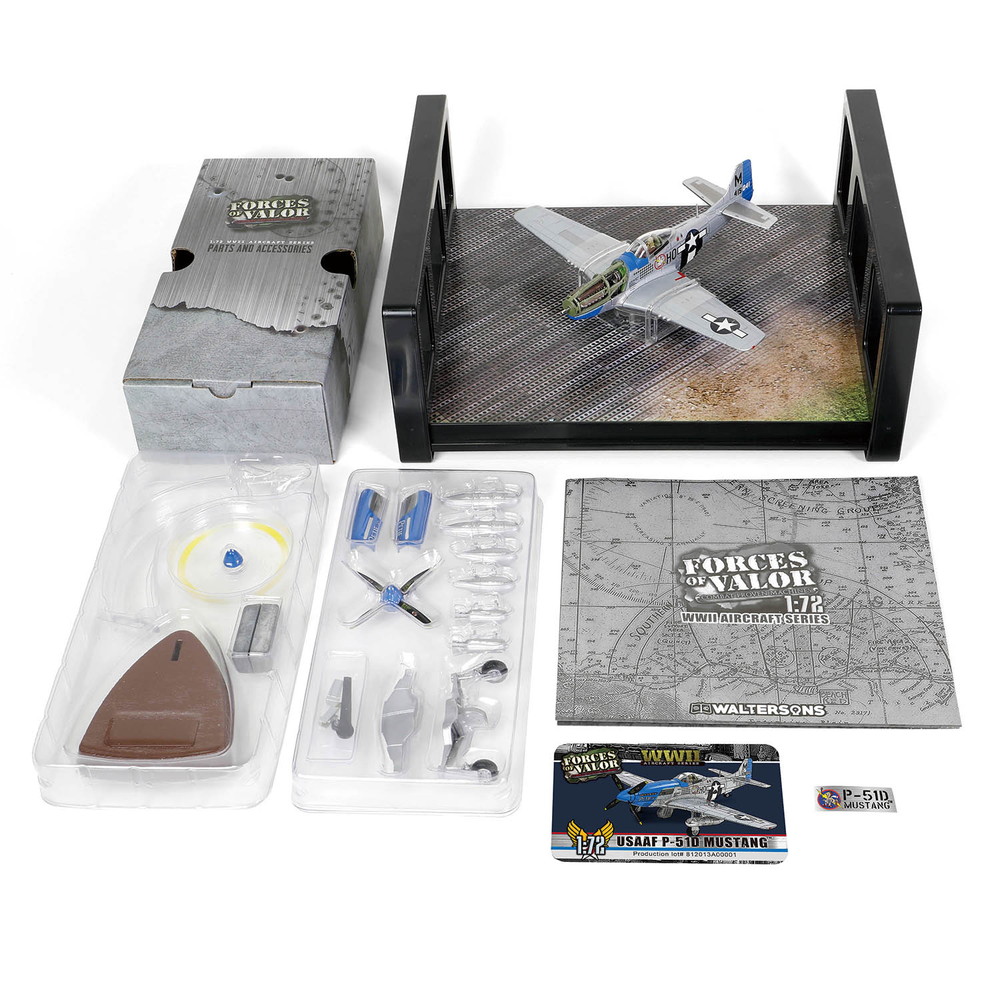 このモデルは第二次大戦中、アメリカ軍が運用した傑作戦闘機、P-51Dマスタングを再現。ダイキャストパーツならではの重量感と剛性ある仕上がりが魅力です。