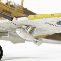 マーキングは1943年4月に北アフリカのチュニジアで活躍したポーランド戦闘機チームのスタニスワフ・スカルスキが搭乗した機体番号ZX-6を再現。超精密タンポ印刷によるマーキングなど、ミリ単位までこだわった塗装仕上げも見逃せません。