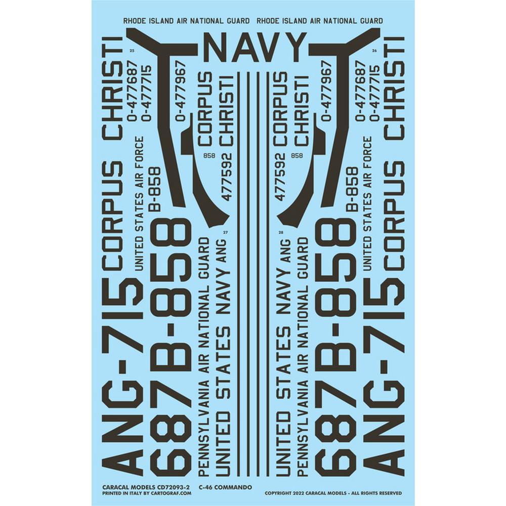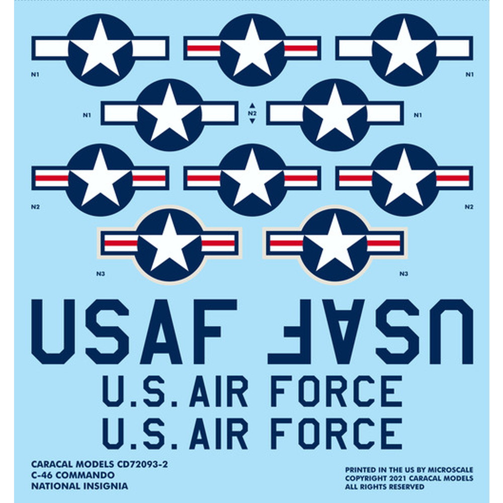 このセットは第二次大戦でアメリカ軍が運用した双発の輸送機、C-46コマンドーの機体のマーキングを収録しています。