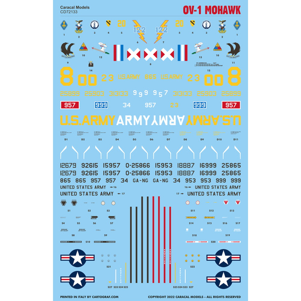 このセットは30年以上に渡ってアメリカ陸軍の武装偵察機として活躍してきたOV-1モホークのマーキングを収録しています。