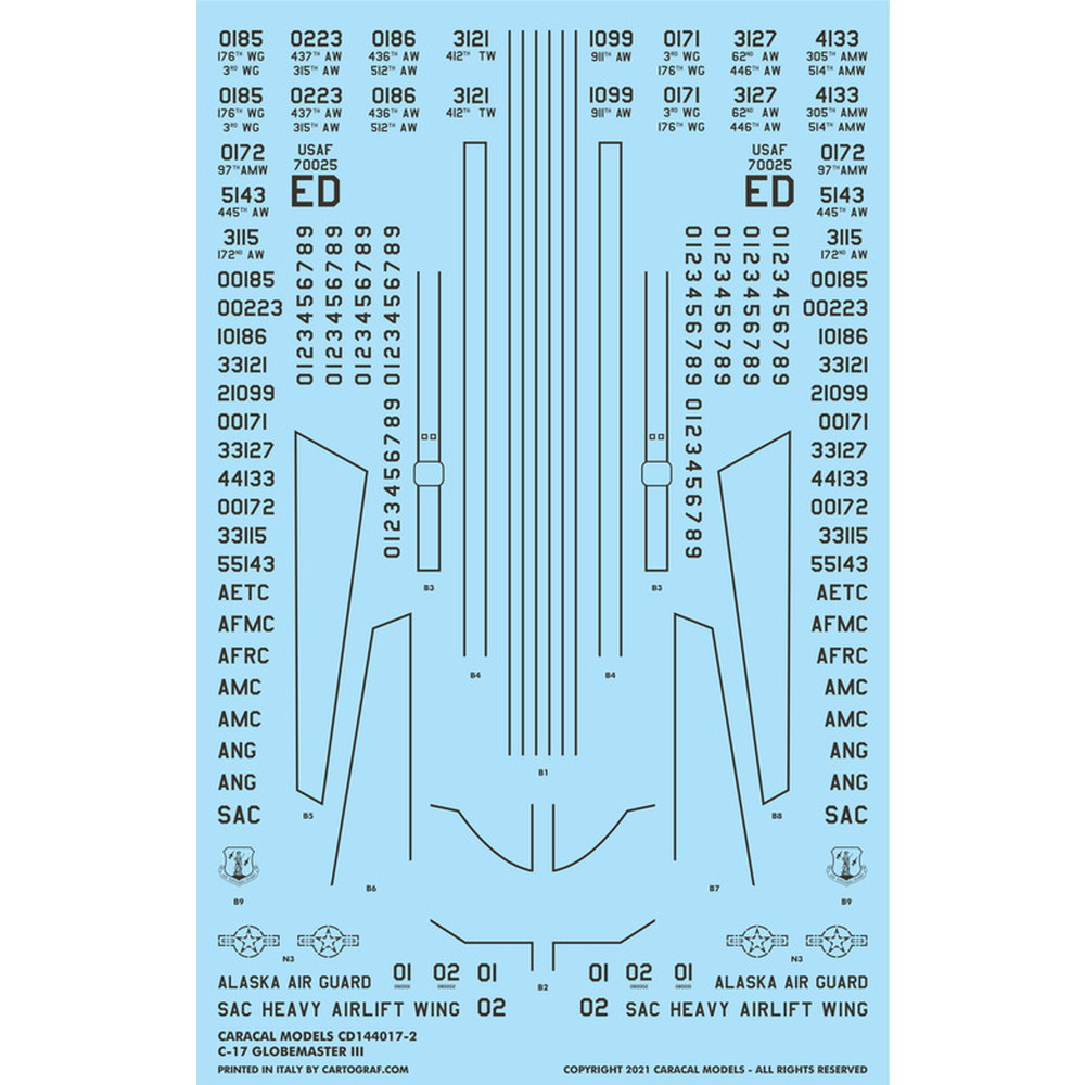このセットは1/144スケールのC-17グローブマスターIIIのモデルに対応したデカールのセットです。